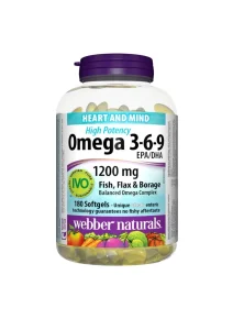 - Webber Naturals High Potency Omega 3-6-9 is a dietary supplement providing a “full spectrum” of essential fatty acids (EFAs) — omega-3, omega-6, and omega-9 — from fish oil, flaxseed oil, and borage oil. It comes in a bottle of 180 softgel capsules (“clear enteric softgels”) — intended for long-term supply.